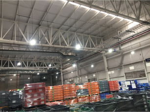 Reducción de costos de energía por 45% al reemplazar equipos LED de COB primera generación con eficiencia de 100 l/w con disipador de aluminio por Equipos COB de 7ma generación con eficiencia de 137 l/w con 5 años de garantía incrementando nivel de iluminación superior a 300 luxes sobre promedio de 200 lx existentes.