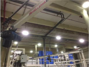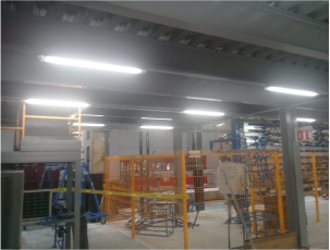 Necesidad en planta de incremento de iluminación a 500 lx, reemplazando equipos de aditivo metálico de 450 W y utilizando equipos de LED de 160 W de COB de 7ma generación generando la iluminación limpia por el IRC superior a 80, todo en tonalidad 5000K.