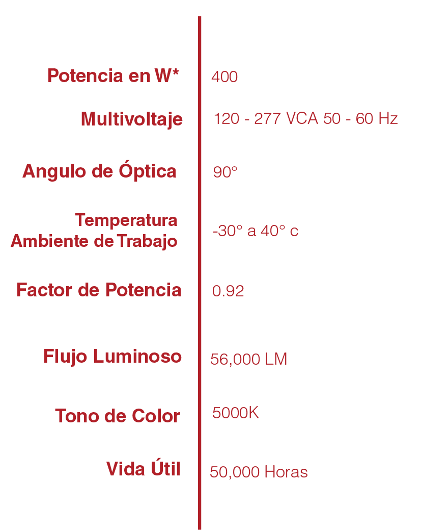 Ideal para espacios exteriores, estacionamientos, canchas,
