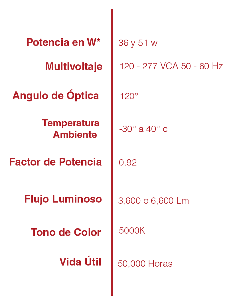 eficiente iluminación, óptica a 120°
